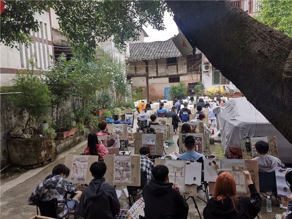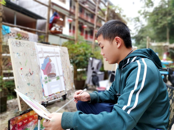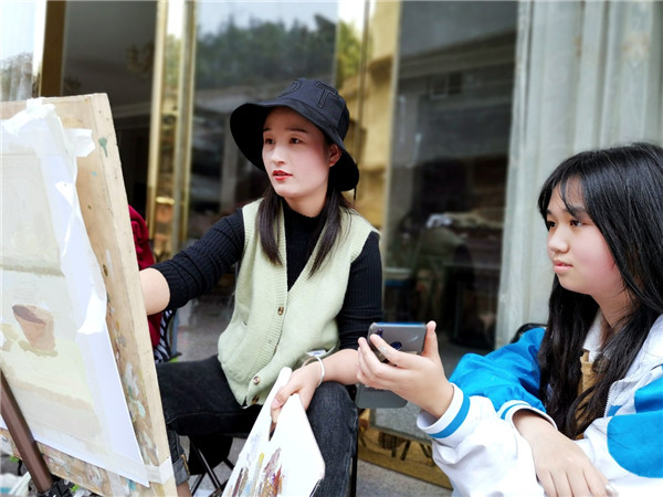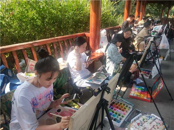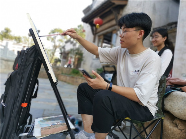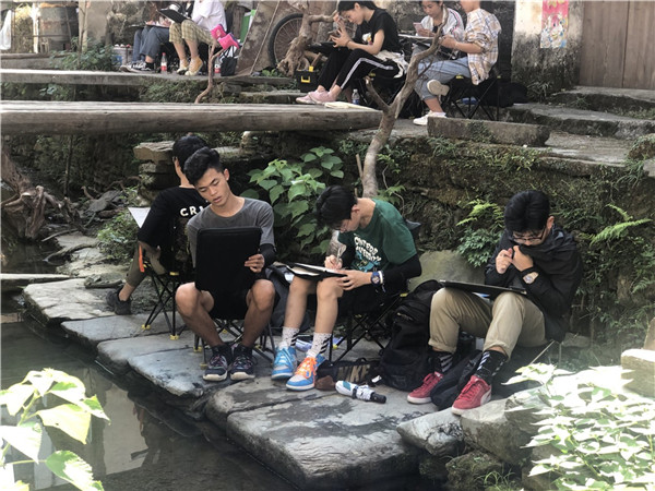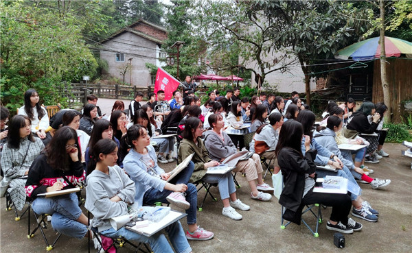 鍦ㄨ佸笀浠殑綺懼績鎸囧涓嬶紝瀛﹀瓙浠鏅啓鐢熷湪鍙栨櫙銆佹瀯鍥俱佽皟鑹蹭腑
