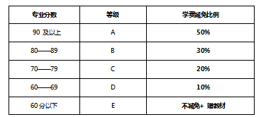 鈼忓噺鍏嶈鍒欙細鍚勪笓涓氳冭瘯絳夌駭婊″垎100鍒嗭紝鎸夌収鑰冪敓琛ㄧ幇錛屼笉鍚岃冪駭瀵瑰簲涓嶅悓瀛﹁垂鍑忓厤姣斾緥(鏈彇寰楀璐瑰叏鍏嶈祫鏍肩殑鑰冪敓鎸夌収涓撲笟絳夌駭榪涜鍑忓厤)銆?