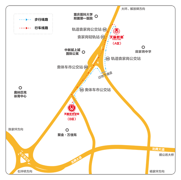 公交 - 轨道袁家岗站 (117?325?223?403?419?839路等)