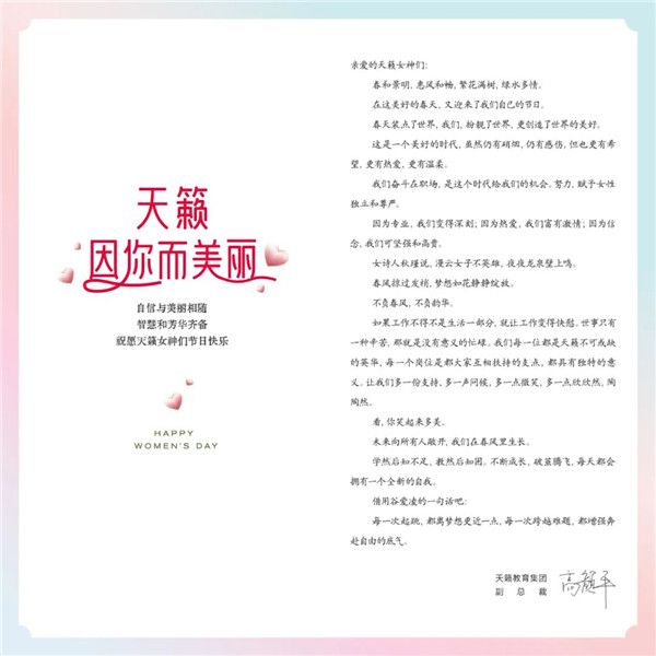 3鏈?鏃ワ紝榪欐槸涓睘浜庢瘡涓浣嶅ぉ綾佸コ紲炵殑鑺傛棩!濂崇浠椿璺冨湪涓嶅悓鐨勫伐浣滃矖浣嶏紝鏍″洯閲屽澶勬槸濂逛滑涓撴敞浜庡伐浣滅殑韜獎錛屽ぉ綾佸洜濂逛滑鑰屾洿鍔犵編涓?涓鴻〃杈懼濂崇浠殑紲濈錛屽ぉ綾佸紑灞曗?路8濂崇鑺傗濈壒鍒椿鍔紝璁╁コ紲炰滑搴﹁繃涓涓俯鏆栬岄毦蹇樼殑鑺傛棩銆?