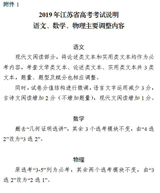 一Q?019q江苏省高考考试说明Q语文、数学、物理主要调整内?