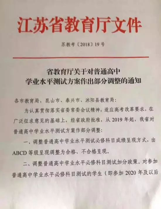 三、调整普通高中学业水q_修科目测试加分政{。对参加普通高中学业水q_修科目测试的学生(卛_?020q及以后高考的学生)取消“见A加分”政{,2018q已参加普通高中学业水q_修科目测试的学生(卛_?019q高考的学生)获得的加分仍予以承认?