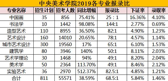 涓浗緹庢湳瀛﹂櫌2019騫存湰縐戣鍒掓嫑鐢?770浜猴紝鍗存湁7.9涓囦漢嬈℃姤鑰冿紝鏁翠綋鎶ュ綍姣?5鈭?銆傝岀幆澧冭壓鏈笓涓氭姤褰曟瘮楂樿揪120鈭?錛屽浘鍍忎笌濯掍綋鑹烘湳涓撲笟鎶ュ綍姣旇繎75鈭?銆?