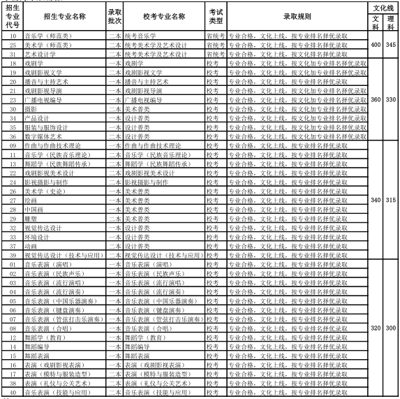 云南艺术学院2019q招生各专业文化最低控制线(云南?