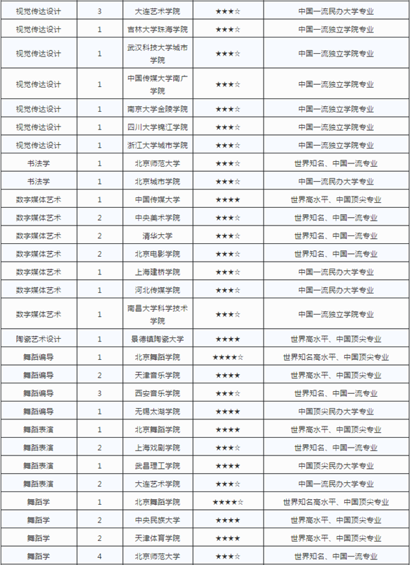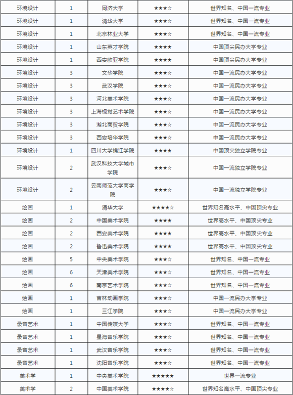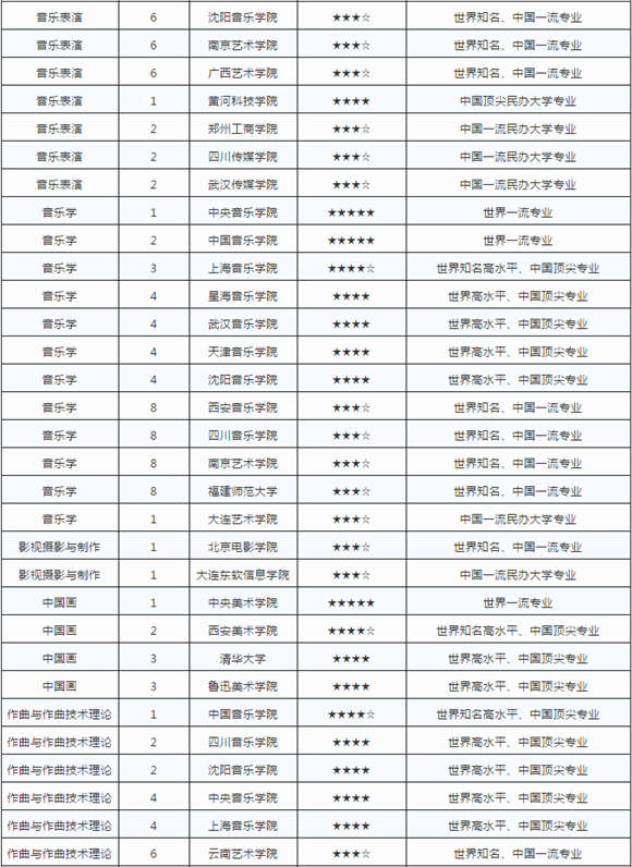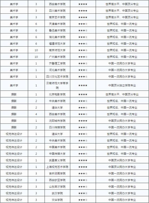 以上则是全国艺术cM业最强院校排行汇总,看完q个排行榜,2020届的考生们,你是否有目标院校了呢?如果已经有了Q那p紧行动v来,努力提升专业和文化成l,向目标院校进军吧!
