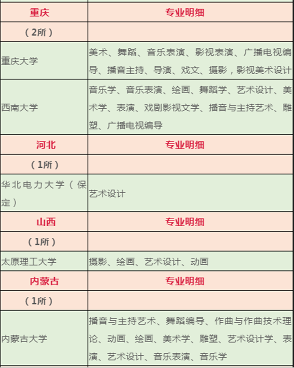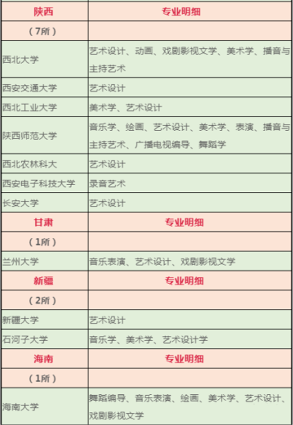 通过q个表格我们可以看到Q全国开设艺术类专业?11?85院校q不,很多中部城市和西部城?11?85院校都有开设。下面一h看看专业详情?
