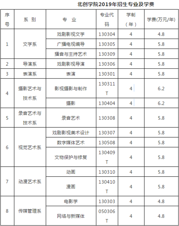 鍖楀垱瀛﹂櫌璁炬湁鏂囧緋匯佸婕旂郴銆佽〃婕旂郴銆佹憚褰辮壓鏈笌鎶鏈郴銆佽瑙夎壓鏈郴銆佸綍闊寵壓鏈笌鎶鏈郴銆佸姩婕壓鏈郴銆佷紶濯掔鐞嗙郴絳?涓暀瀛︾郴鍜?涓熀紜鏁欏閮ㄣ?