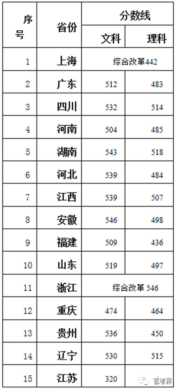 注:以上专业文理l排Q专业分和文化分均需辑ֈ专业所在批ơ的省艺术类本科Uѝ?