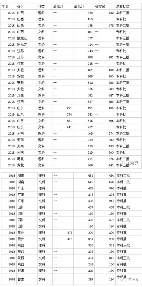二?018q认可省U统考成l的各省术cM业分数线