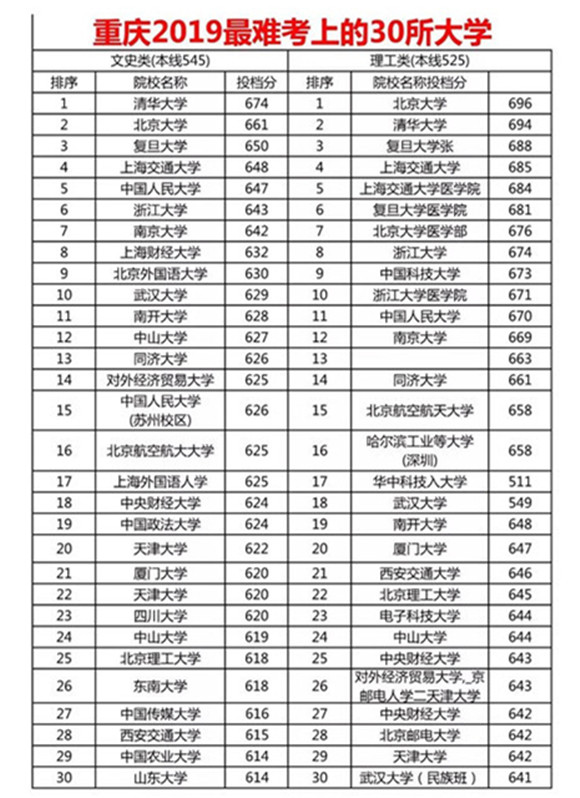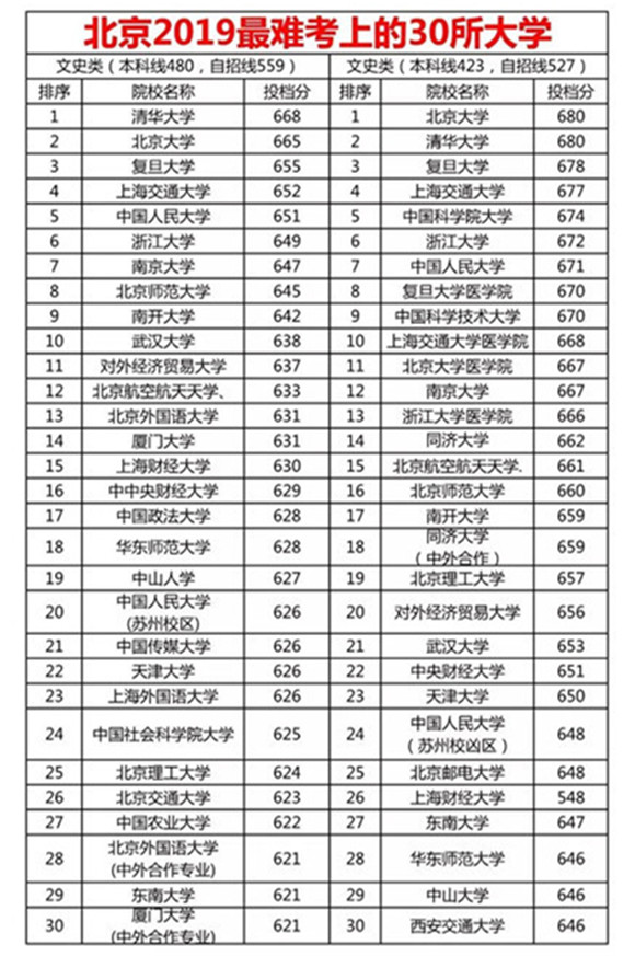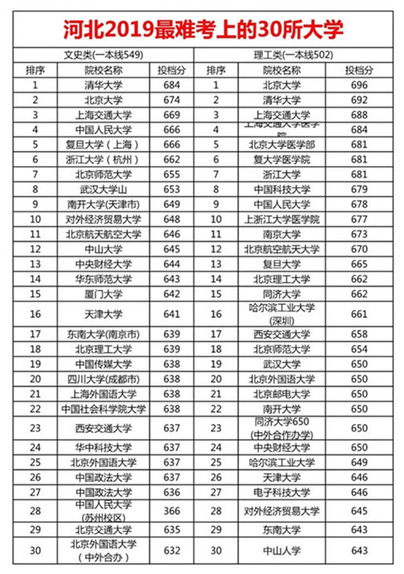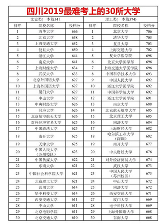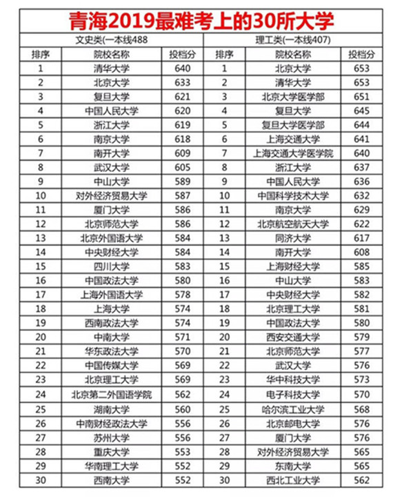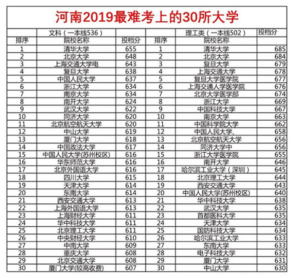 2019各省市最难考的30所大学名单出炉Q录取率不1%Q?/h1>