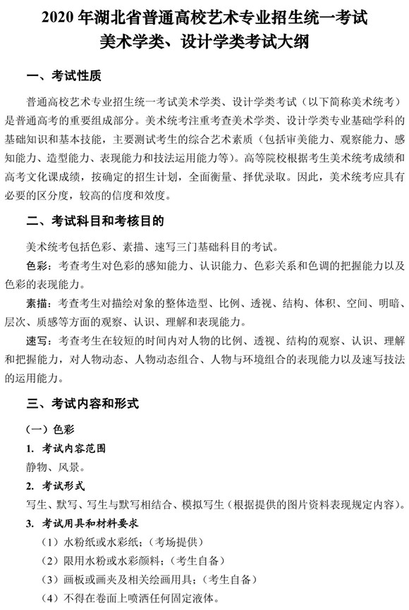 9?0日,湖北省教育考试院发布了2020q湖北省艺术cȝ?术学类、设计学c?考试大纲Q具体内容如下: