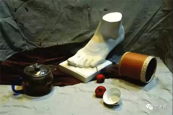 三、模拟写生内容:一个石膏模型,一个玻璃茶Ӟ一个白瓯杯,一个纸{,两颗山楂Q一块浅色衬布,一块灰色衬布,一块深色衬布?见图片小?