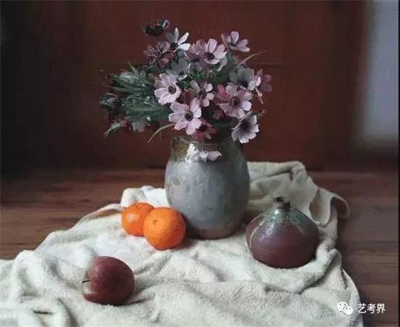 三、模拟写生内容:一束鲜花,两个陶罐Q一个苹果,两个子Q一块浅色衬布?见图片小?