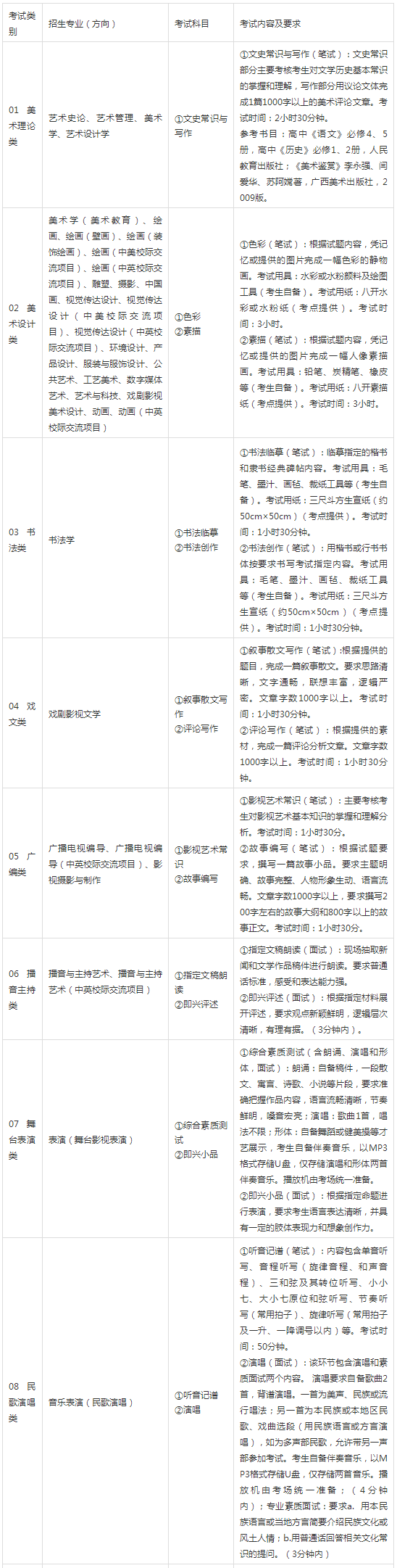 q西艺术学院2020q本、专U招生专?方向)、考试内容及要?/span>
