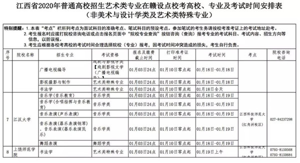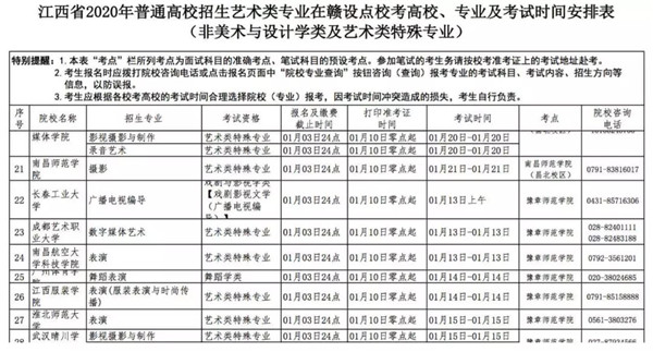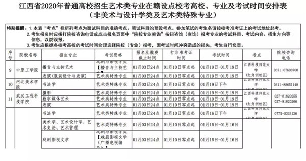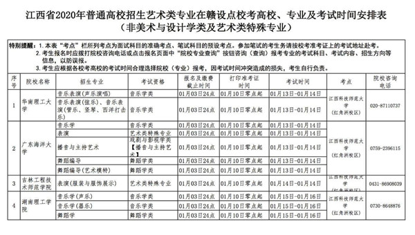 附gQ江西省2020q普通高校招生艺术类专业在讄校考高校、专业及考试旉安排?