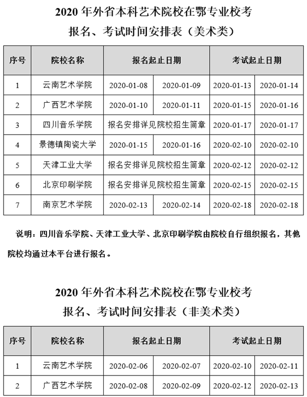 所有艺术类专业校考均安排?020q??日?2日进行。在以上旉内,省外高校与设点市招生考试机构商定本校的考试旉?