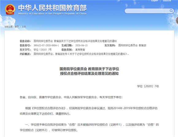 榪戞湡錛屽浗鍔¢櫌瀛︿綅濮斿憳浼氥佹暀鑲查儴鍏竷浜嗗浣嶆巿鏉冪偣鍚堟牸璇勪及緇撴灉銆?/span>