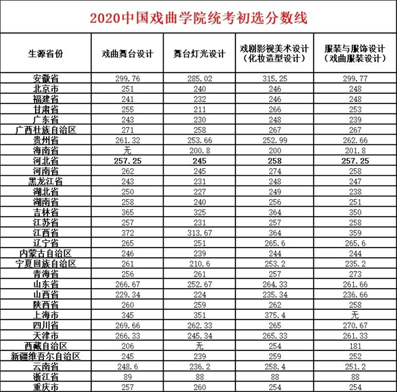 中国戏曲学院2020q统考初选分数线已出炉,有报考该院校的同学可以查看啦!