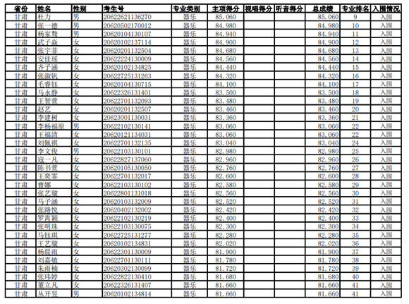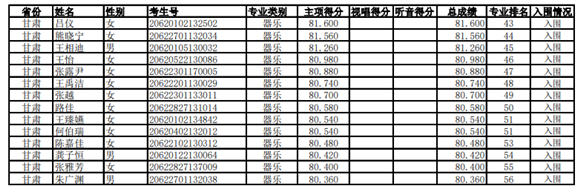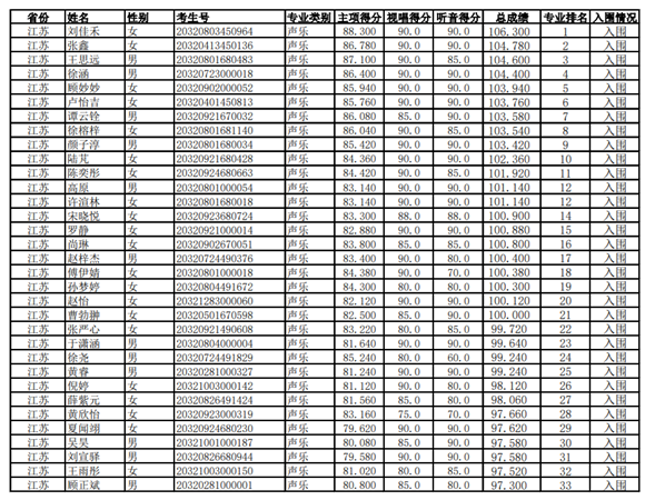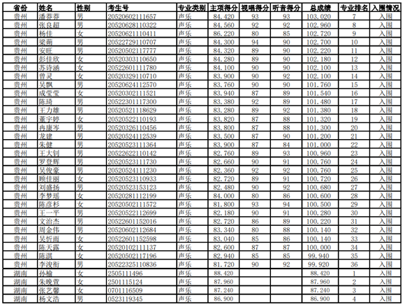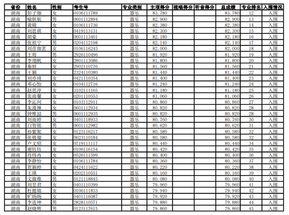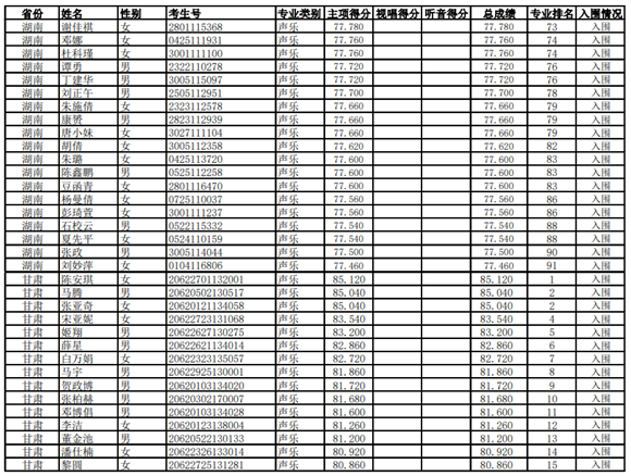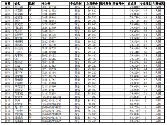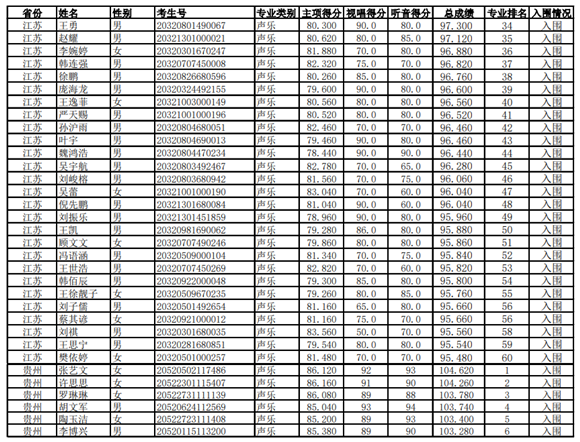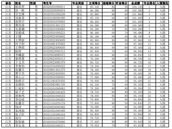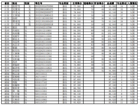 注:我校艺术cM业校考成l是按d由高C分省分类分别排序Q按不超q招生计划数?倍划定入围名?现场专业校考点x苏、贵州的音乐cLd相同者按主项成W由高Cq行排序?/span>
