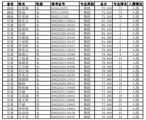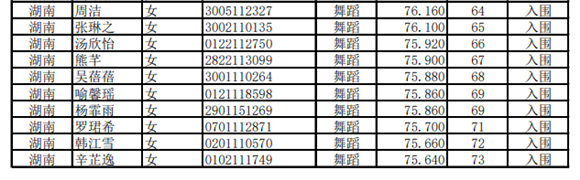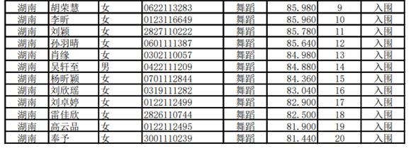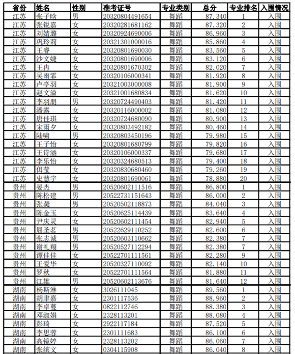 江苏、贵州、湖南、甘肃舞y类入围名单