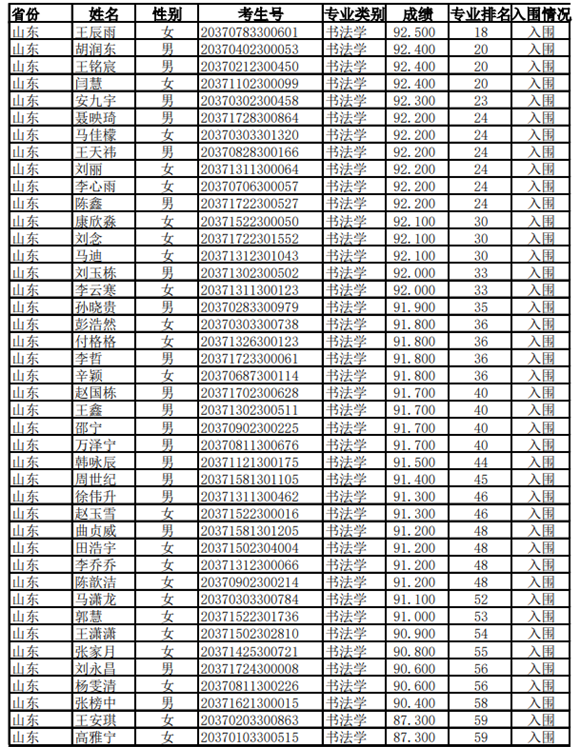 南师范大学公布2020q艺术类专业校考成l及入围名单