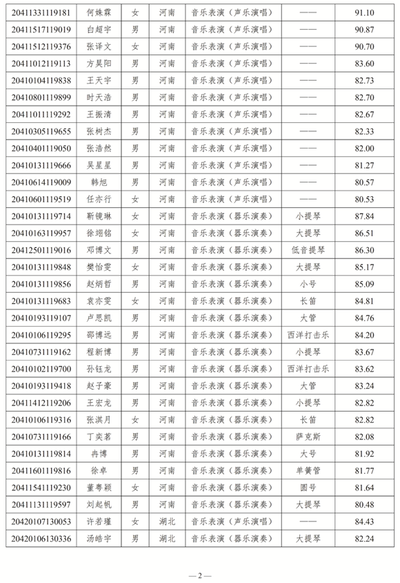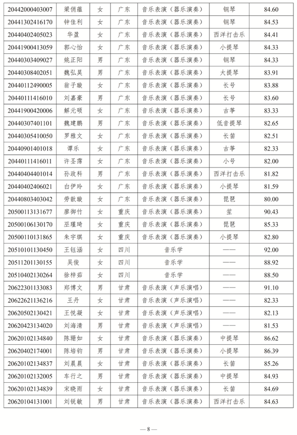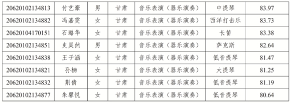 Ҏ考生的专业考试成WQ经招生领导组讨论Q择优确定了音乐学、音乐表演各招生专业(招考方?合格分数U和名单;