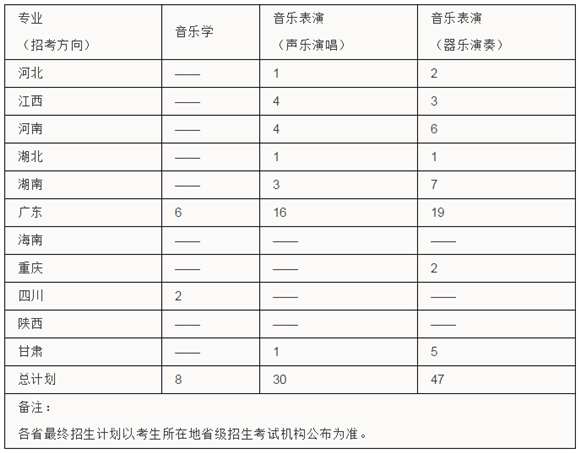二?020q艺术学院本U招生音乐学、音乐表演专业分省分专业计划
