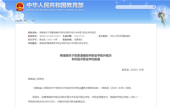 鏁欒偛閮ㄦ寚鍑猴紝緇忕爺絀訛紝鍚屾剰婀栧崡杞歡鑱屼笟瀛﹂櫌鍗囨牸涓烘湰縐戝眰嬈¤亴涓氬鏍★紝瀛︽牎鍚嶇О鏆傚畾涓衡滄箹鍗楄蔣浠惰亴涓氬闄?鏈)鈥濓紝瀛︽牎鏍囪瘑鐮佷負4143013925錛屽紑灞曟湰縐戝眰嬈¤亴涓氭暀鑲茶瘯鐐廣?/span>