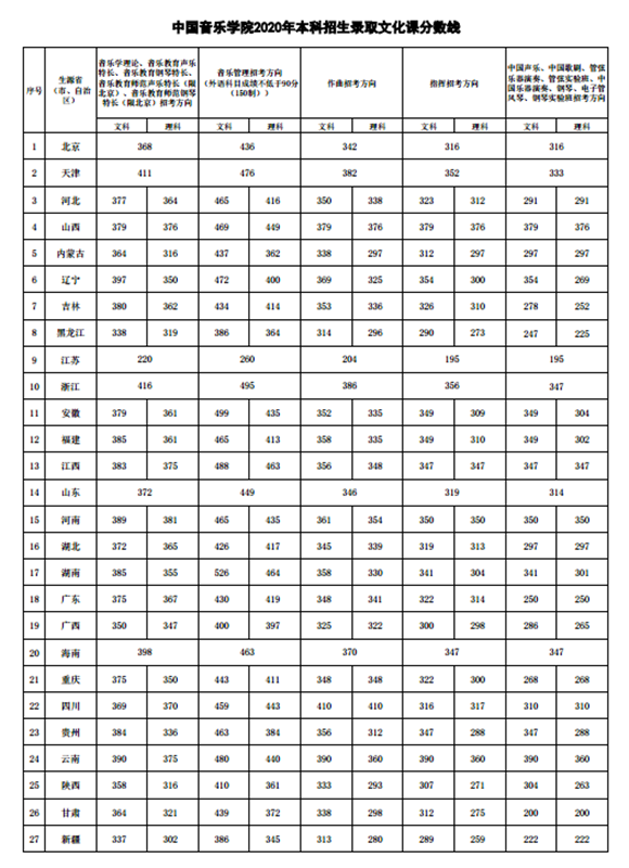 涓浗闊充箰瀛﹂櫌鍏竷2020騫存湰縐戞嫑鐢熸枃鍖栧垎鏁扮嚎