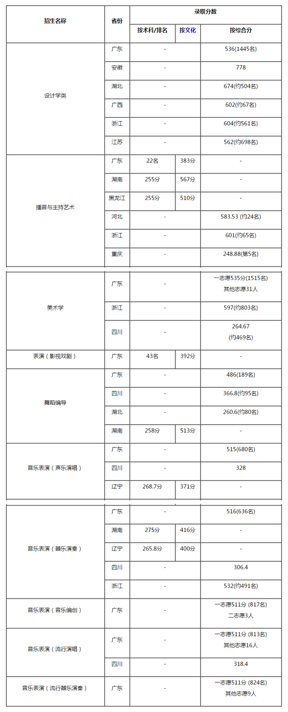 q日Q?a style="color:#00F;">深圳大学公布?020q艺术类专业录取分数U,具体如下Q?/span>