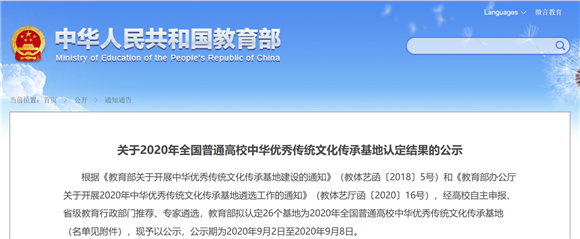 9鏈?鏃ワ紝鏁欒偛閮ㄥ畼緗戜笂鍏竷浜?020騫村叏鍥芥櫘閫氶珮鏍′腑鍗庝紭縐浼犵粺鏂囧寲浼犳壙鍩哄湴璁ゅ畾緇撴灉銆?/span>