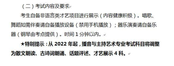 2.鏈鍊煎緱娉ㄦ剰鐨勬槸錛屼粠2022騫磋搗錛屾挱闊充笌涓繪寔鑹烘湳涓撲笟鑰冭瘯縐戠洰灝嗚皟鏁翠負鏁f枃鏈楄銆佸彜璇楄瘝鏈楄銆佽瘽棰樿瘎榪般佹墠鑹哄睍紺?縐戯紝鍙栨秷浜嗘挱璇繪柊闂葷ǹ浠跺拰鍗沖叴涓繪寔縐戠洰銆?/span>