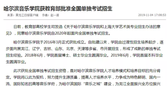 鍘誨勾10鏈?0鏃ワ紝鍝堝皵婊ㄩ煶涔愬闄㈠叕浼楀彿銆佸搱灝旀花鏂伴椈緗戠瓑鍙戝嚭淇℃伅錛氭暀鑲查儴鍙戝嚱銆婂叧浜庡搱灝旀花闊充箰瀛﹂櫌鍜屼笂嫻峰ぇ瀛﹁壓鏈被涓撲笟鎷涚敓鍔炴硶鐨勬剰瑙併嬶紝鍚屾剰鍝堝皵婊ㄩ煶涔愬闄㈣嚜2020騫磋搗闈㈠悜鍏ㄥ浗鍗曠嫭鑰冭瘯鎷涚敓銆?/span>