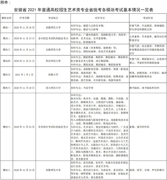 q日Q安徽省教育考试院公布了2021q艺术类专业l考时间和考试大纲Q具体如下: