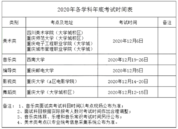 閲嶅簡2021鑹烘湳綾諱笓涓氱粺鑰冩椂闂磋〃