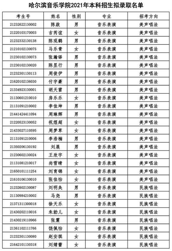 鍝堝皵婊ㄩ煶涔愬闄?021騫存湰縐戞嫑鐢熸嫙褰曞彇鍚嶅崟