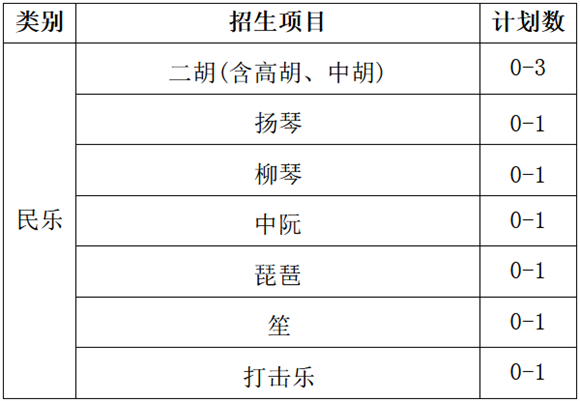 招西z乐(圆号、西z打M(仅限马林巴、小军鼓、定音鼓))、民?W、笛子、柳琴、中阮、高胡、中胡、大阮、民族打M(仅限堂鼓、排?)?/span>