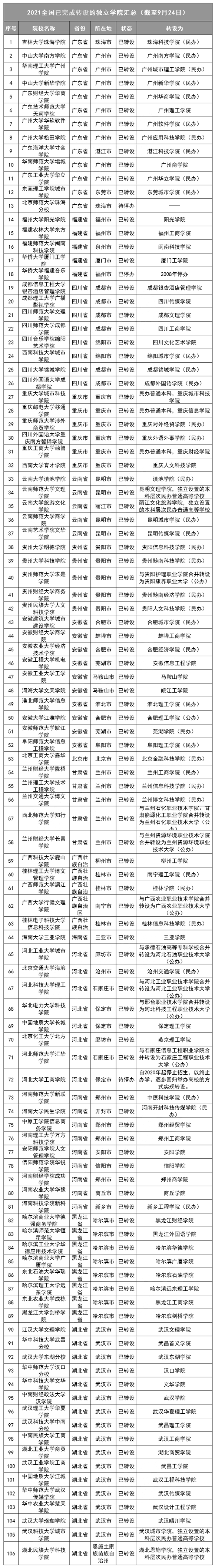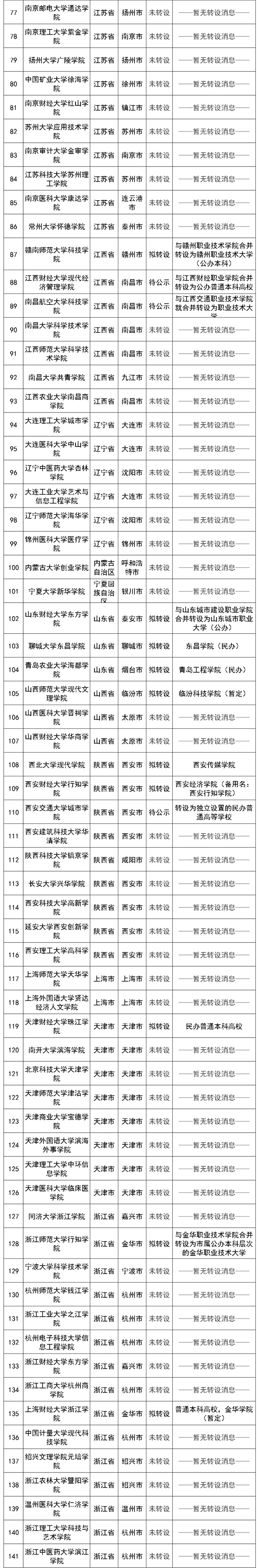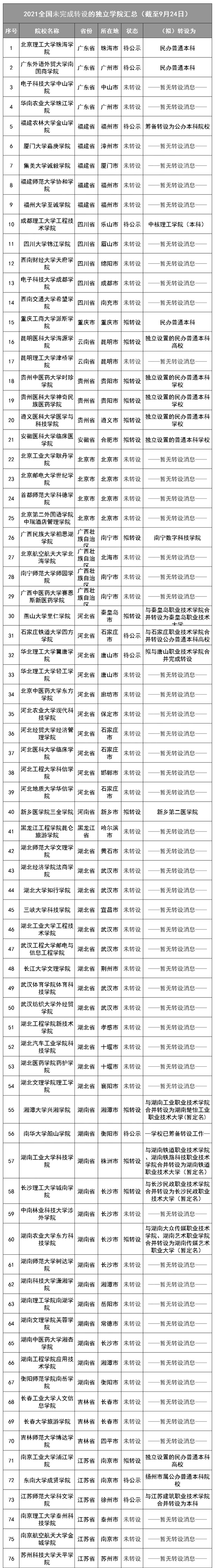 到目前,全国仍有多达141所独立学院未完成转设Q具体名单如下: