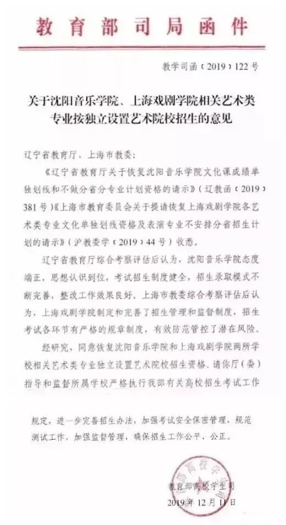 无独有偶Q?a style="color:#00F;">沈阳音乐学院?a style="color:#00F;">上v戏剧学院也曾因ؓq规招生被取消了独立艺术院校招生资格Qƈ?019q得以恢复?/span>