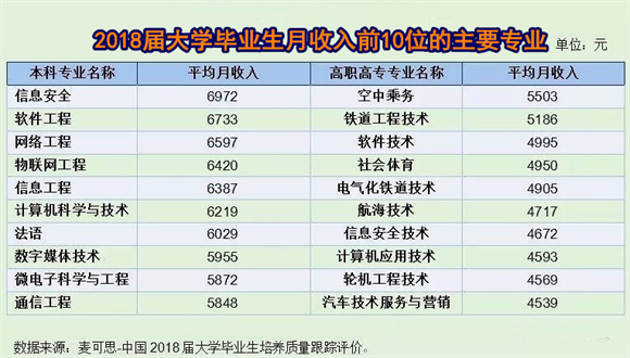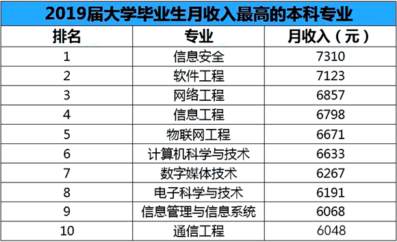 姣斿錛屻?/span>2020騫翠腑鍥藉ぇ瀛︾敓灝變笟鎶ュ憡銆嬫樉紺猴細2019灞婃湰縐戞瘯涓氱敓鏈堟敹鍏ュ墠10 鐨勪笓涓氾紝鍧囦負鐞嗗伐縐戞垨綆$悊瀛︾鐨勩?/span>