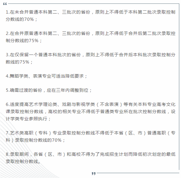 在此ơ改革中Q《指导意见》有提出“高考文化课成W所占比例原则上不低?0%”的说法Q很Ҏ让h?018q艺考改革提出的“不得低于本U第二批ơ录取控制分数线?0%?5%”等要求相淆?/span>