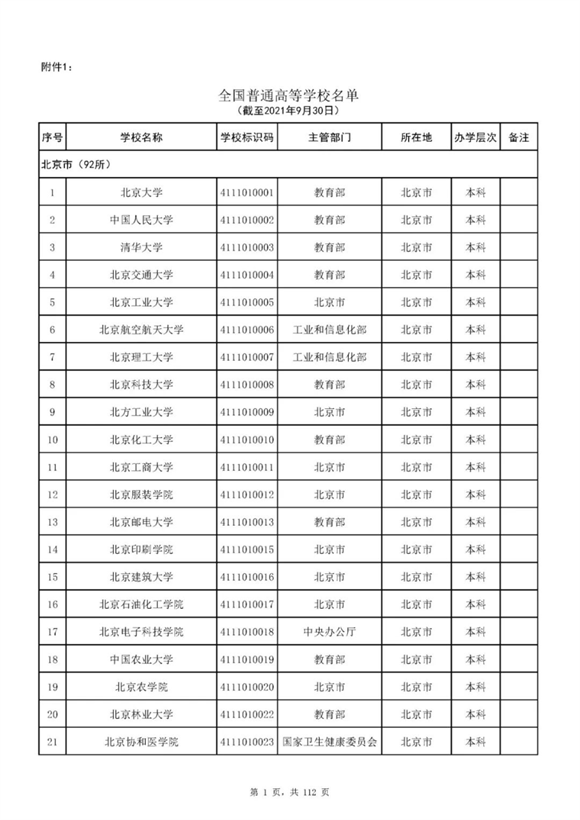 鏁欒偛閮ㄥ叕甯冦?021騫村害鍏ㄥ浗楂樼瓑瀛︽牎鍚嶅崟銆嬶紝鎴嚦2021騫?鏈?0鏃ワ紝鍏ㄥ浗楂樼瓑瀛︽牎鍏辮3012鎵錛屽叾涓細鏅氶珮絳夊鏍?756鎵(鏈1270鎵銆佷笓縐?486鎵)錛屾垚浜洪珮絳夊鏍?56鎵銆傛湰鍚嶅崟鏈寘鍚彴婀劇渷銆侀娓壒鍒鏀垮尯鍜屾境闂ㄧ壒鍒鏀垮尯楂樼瓑瀛︽牎銆?/span>