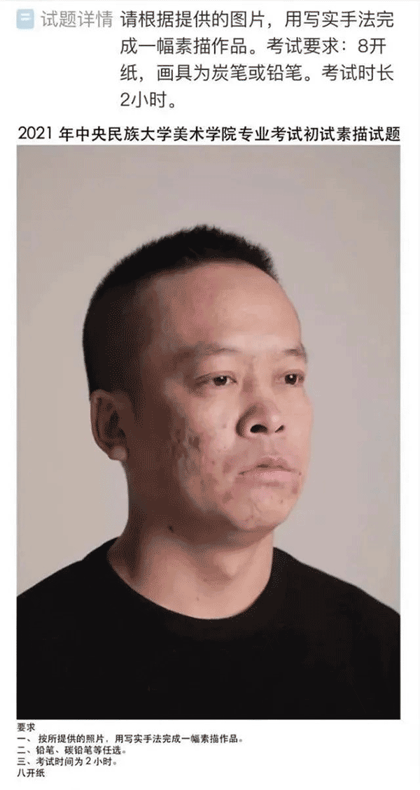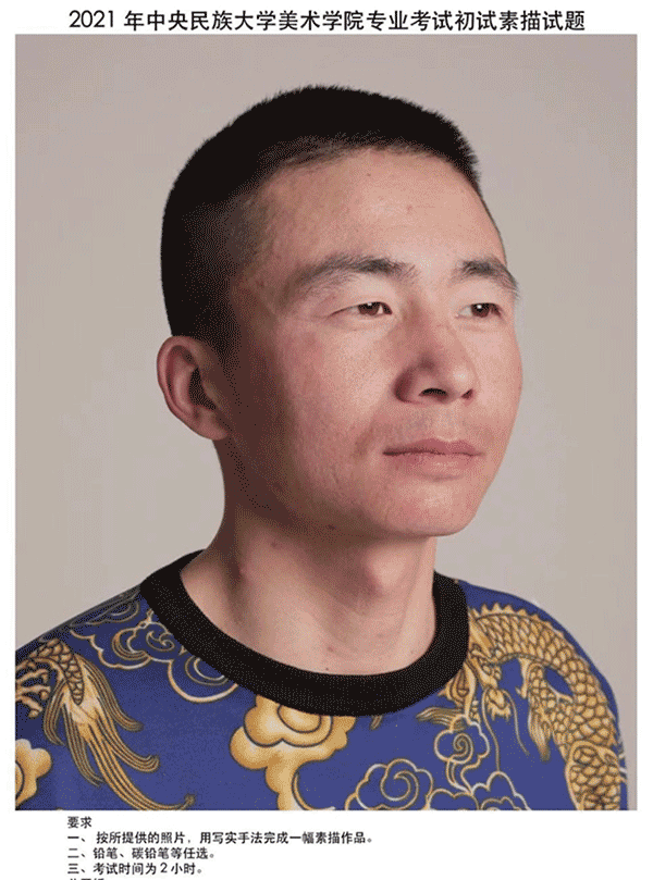 考试题目Qh物头像素描,提供人物彩色照片Q侧面男中年