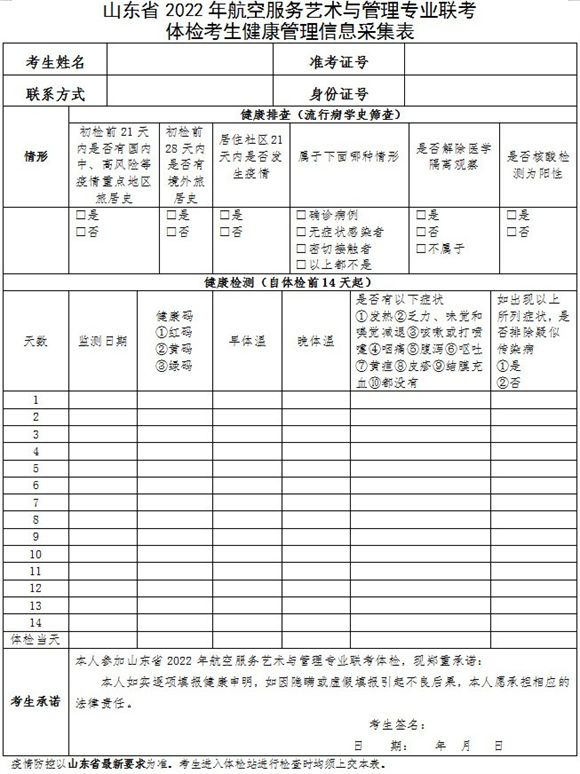 (1)浣撴鏃墮渶鍑虹ず鍋ュ悍緇跨爜錛屽茍鎼哄甫浜屼唬灞呮皯韜喚璇佸師浠?涓㈠け鑰呴渶鎸佸甫鏈夊ご鍍忕殑鎴風睄璇佹槑鍘熶歡鍜屽鐢熻瘉鍘熶歡)銆佷綋媯鍓?8灝忔椂鍐呮牳閰告嫻嬮槾鎬х焊璐ㄨ瘉鏄庛併婂北涓滅渷2022騫磋埅絀烘湇鍔¤壓鏈笌綆$悊涓撲笟鑱旇冧綋媯鑰冪敓鍋ュ悍綆$悊淇℃伅閲囬泦琛ㄣ?鑰冪敓鑷鎵撳嵃錛岄檮浠?)銆?/span>