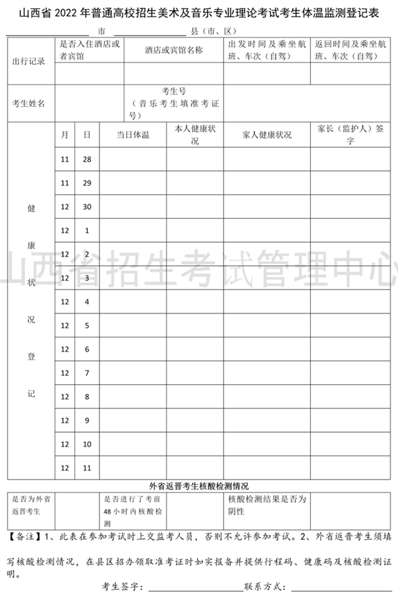 1銆佷負紜繚騫垮ぇ鑰冪敓鍜屾秹鑰冧漢鍛樼殑鐢熷懡瀹夊叏鍜岃韓浣撳仴搴鳳紝鑰冪敓瑕佸湪鑰冨墠14澶╁唴榪涜鑷垜浣撴俯鐩戞祴錛屽瀹炲~鍐欎綋娓╃洃嫻嬬櫥璁拌〃錛屽鐪佽繑鏅嬭冪敓欏誨~鍐欐牳閰告嫻嬫儏鍐碉紝鑰冪敓鏈漢鍜屽闀?鎴栫洃鎶や漢)絳懼瓧騫跺鐧昏琛ㄥ唴瀹圭湡瀹炴ц礋璐c傜櫥璁拌〃鍦ㄥ北瑗挎嫑鐢熻冭瘯緗?http://www.sxkszx.cn)涓嬭澆鎵撳嵃銆傝冪敓鍦ㄥ弬鍔犺冭瘯鏃訛紝欏誨皢浣撴俯鐩戞祴鐧昏琛ㄤ笂浜ょ洃鑰冧漢鍛橈紝鍚﹀垯涓嶅厑璁稿弬鍔犺冭瘯銆?/span>