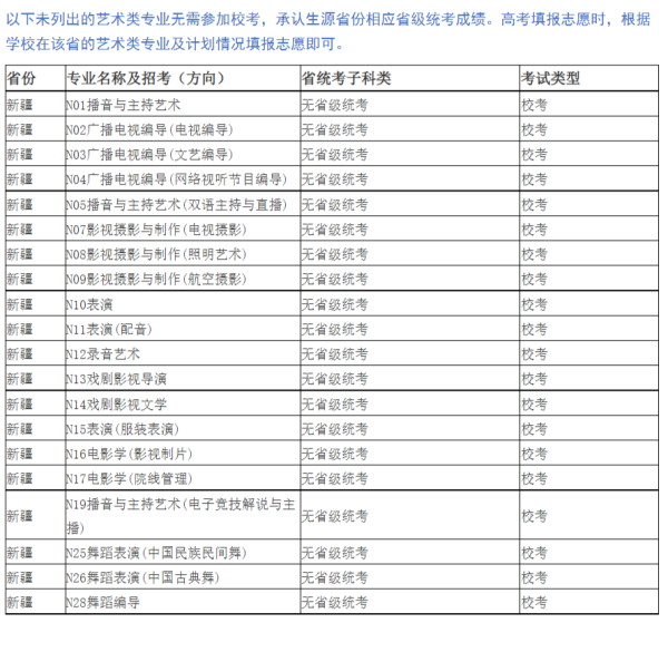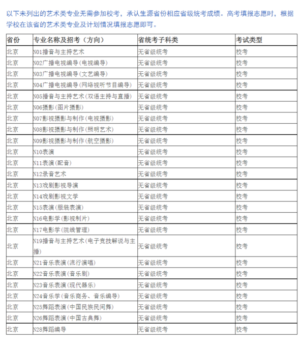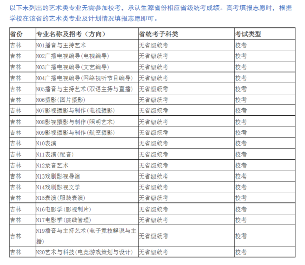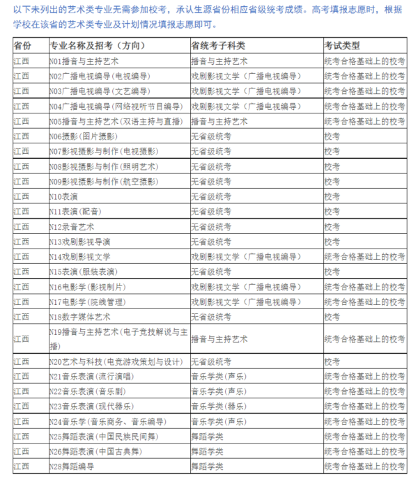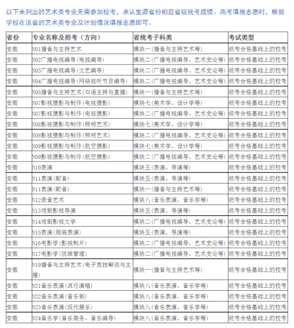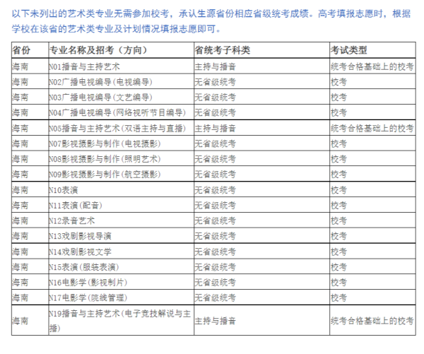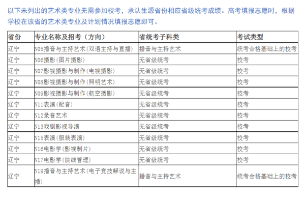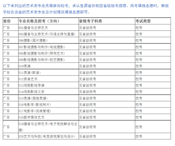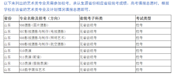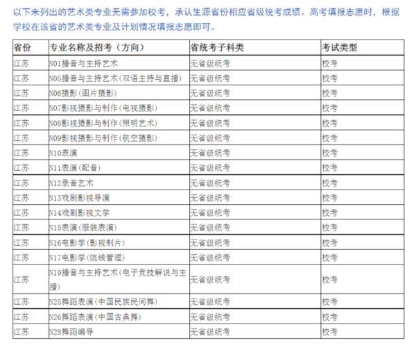 南京传媒学院艺术cL考专业与各省U统考对照表