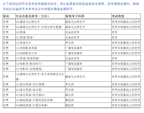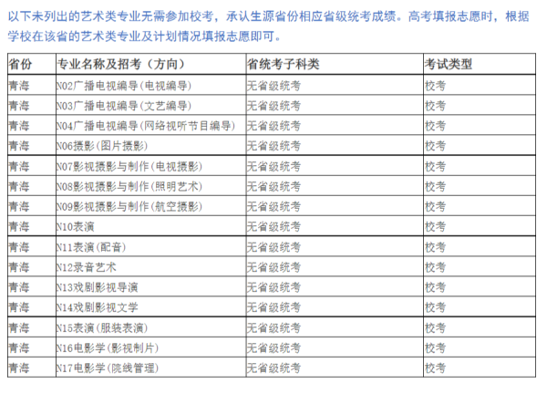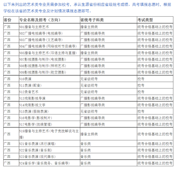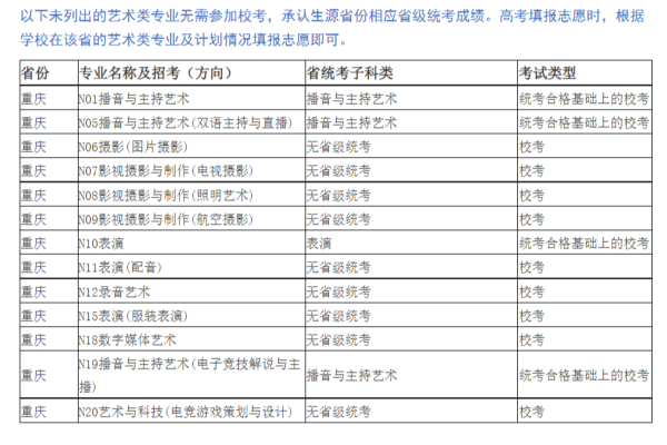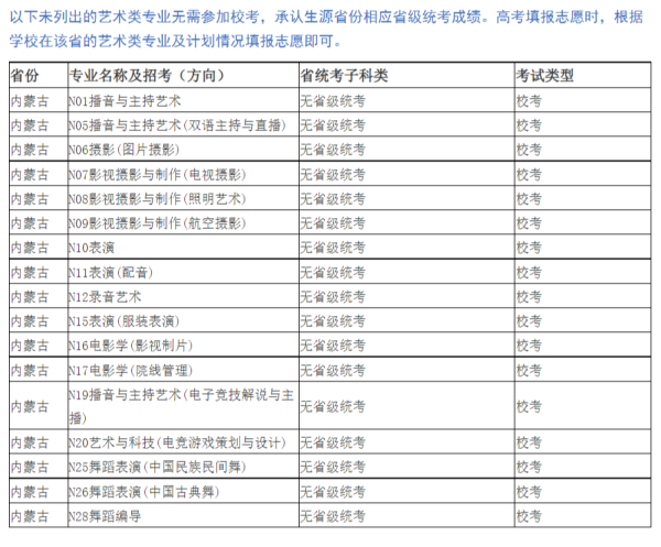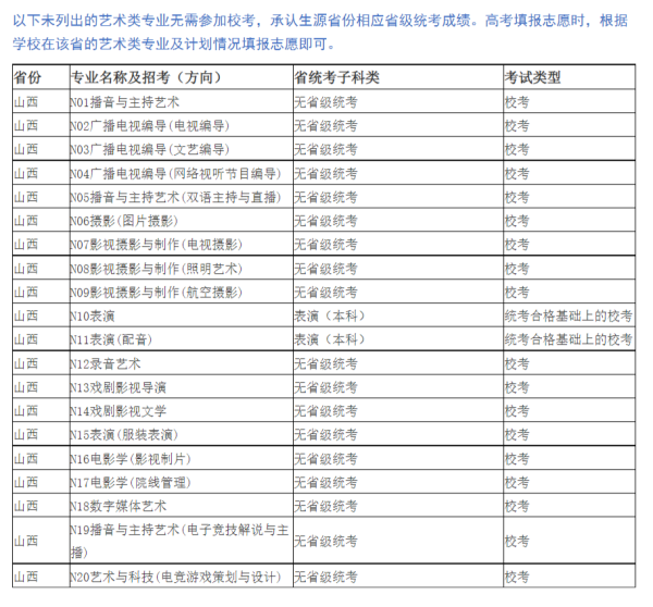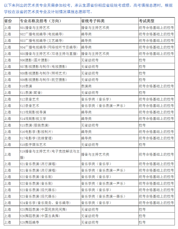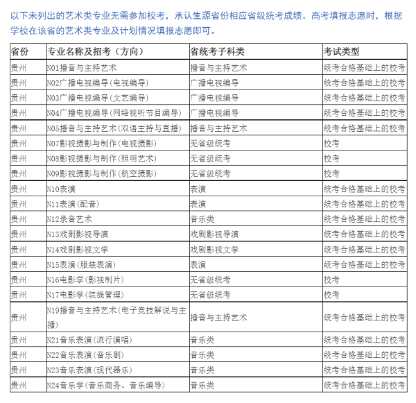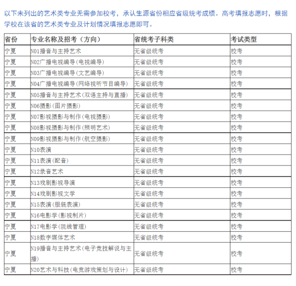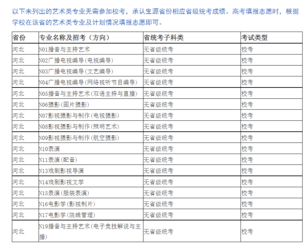 南京传媒学院艺术cL考专业与各省U统考对照表