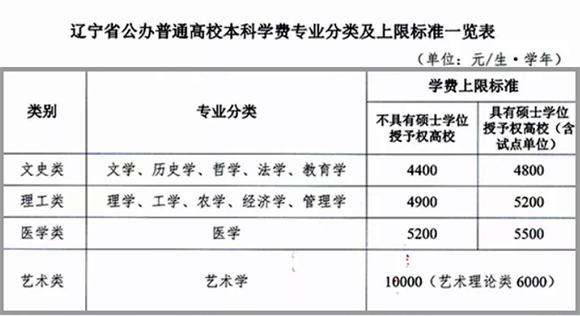 辽宁省则Ҏ教育部《普通高{学校本U专业目录》,学费结构调整优化ؓ文史、理工、医学和艺术四类Qƈ定每生每学q学费上限标准ؓQ?/span>