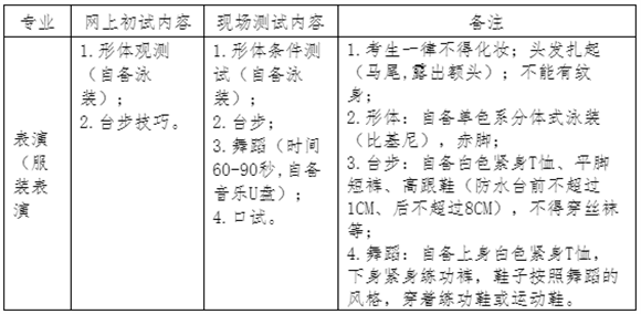 琛ㄦ紨(鏈嶈琛ㄦ紨)涓撲笟灞炰簬鑹烘湳綾繪嫑鐢熴傛寜鍏ㄥ浗鏅氶珮鏍℃嫑鐢熷伐浣滅殑鏈夊叧瑙勫畾錛屽彇寰椾笓涓氳冭瘯鍚堟牸璇佺殑鑰冪敓錛岃繕欏誨弬鍔犲叏鍥芥櫘閫氶珮絳夊鏍$粺涓鏂囧寲鑰冭瘯銆?