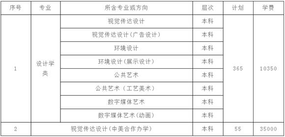 我校设计学类专业分两个学院进行招生培养,其中艺术设计学院包含设计学类、视觉传达设?中美合作办学)专业;工业设计学院包含产品设计、品设?中美合作办学)专业?